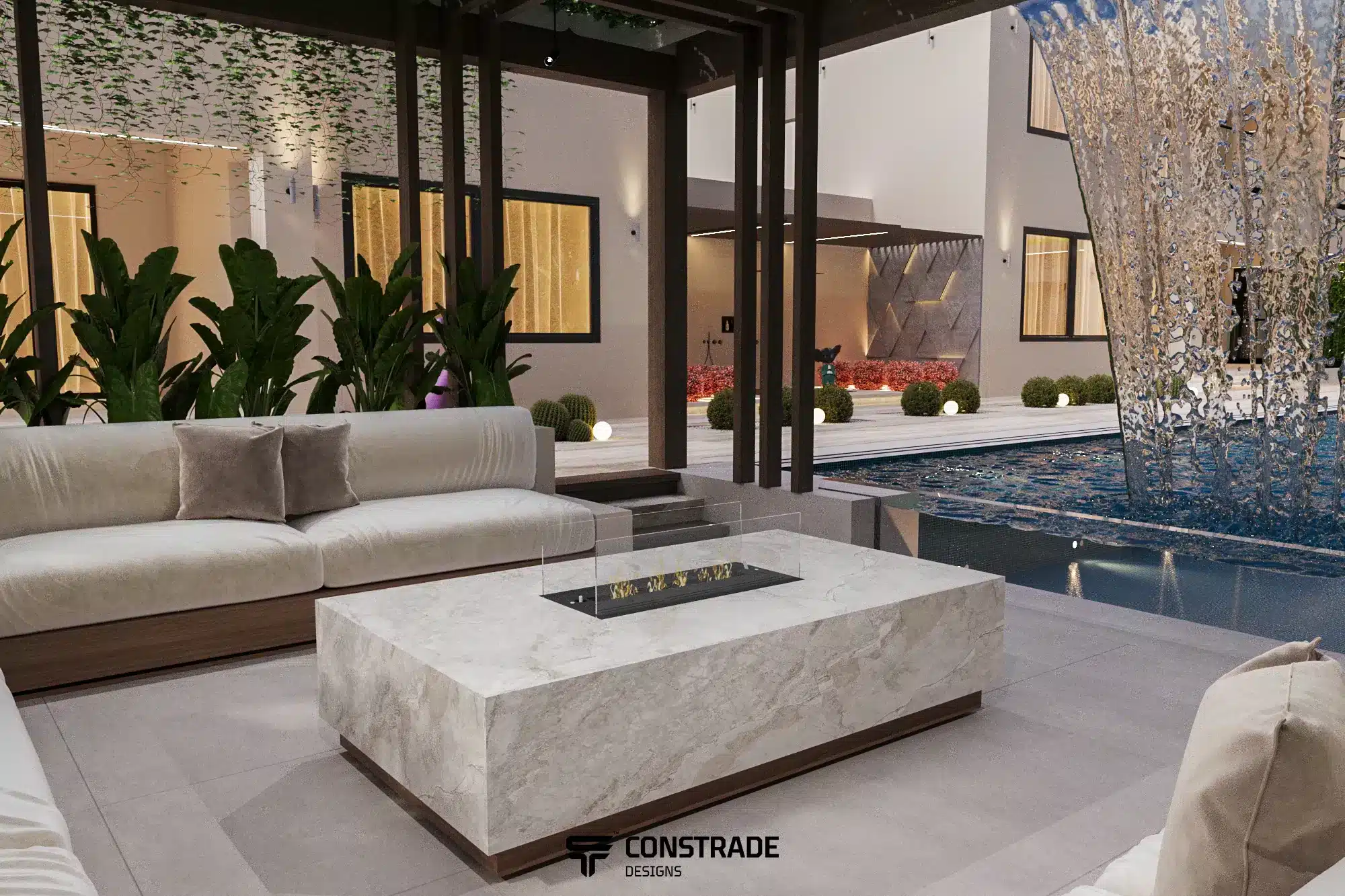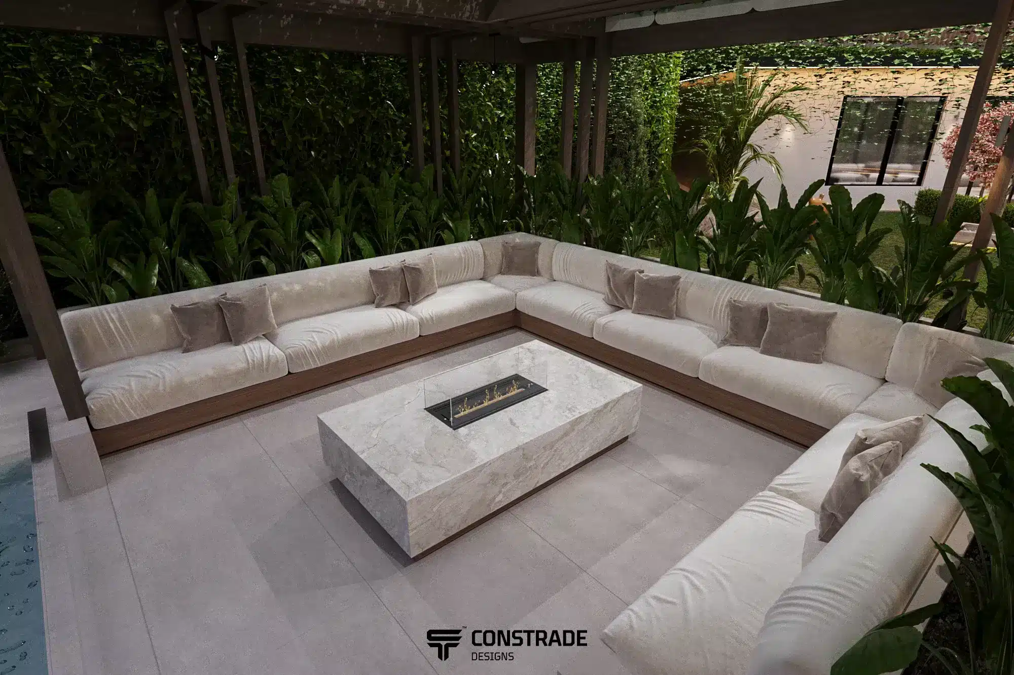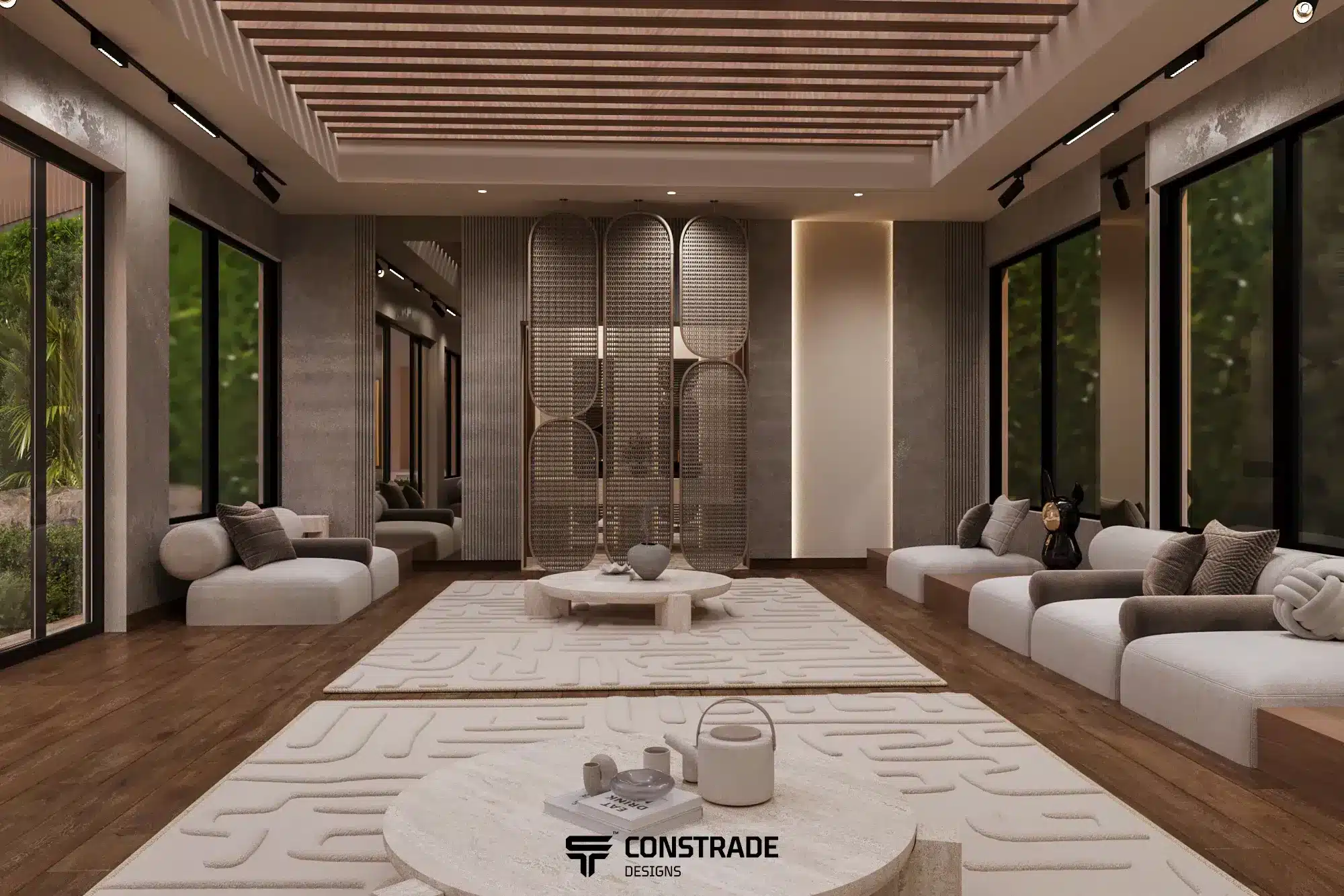 ركزت شركة كونستريد على تحقيق توازن بين العناصر الطبيعية والعناصر المعمارية، مما يمنح الجاردن طابعًا أنيقًا ومريحًا في الوقت نفسه.